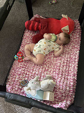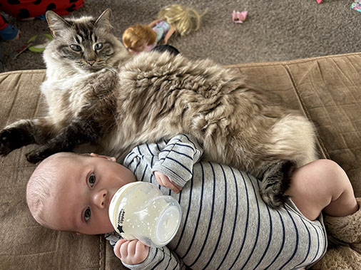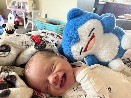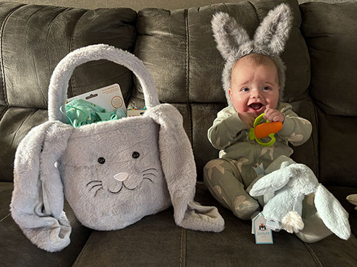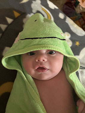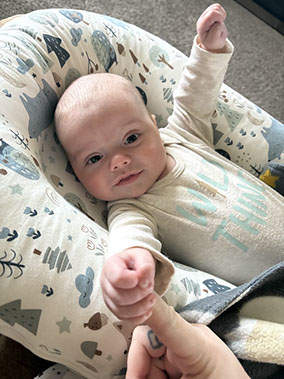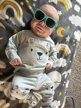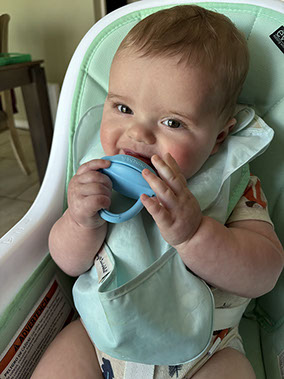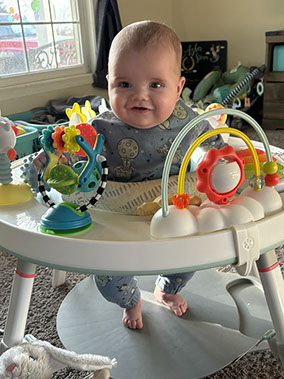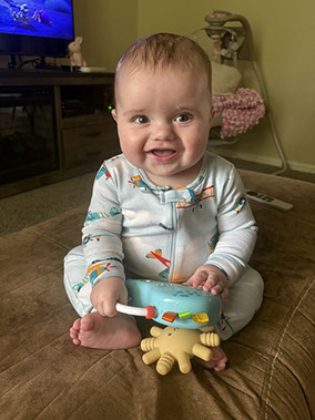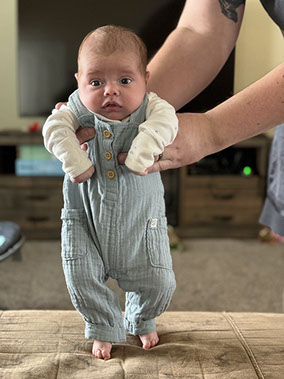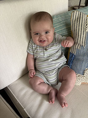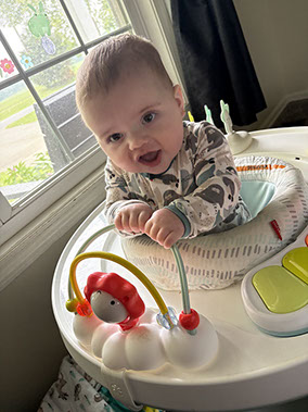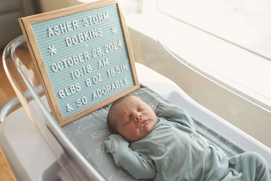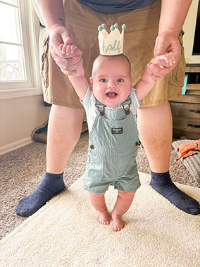 He Loves Being Tickled, The Kitties, Car Rides, Books, Eating, Crinkly Toys, His Toes, Your Toes, Any Toes, Peek-a-Boo, Playing with his Sissy, Bathtime, Watching BLUEY, Musical sounds, His Family, Mommy & Daddy Born October 28th, 2024